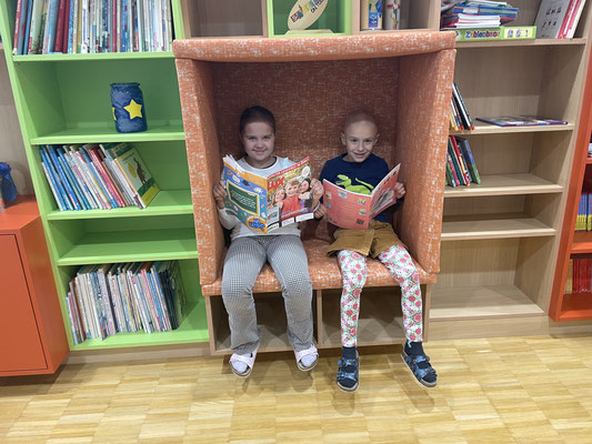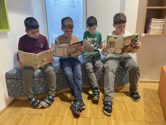 Lesewichteln montags so gegen 8:45 Uhr...im Gang...in den Klassen...auf der Stiege...in der Bibliothek...sehr sehr fein...