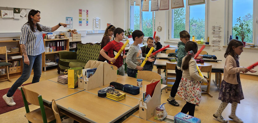 Die Kids der 1. Schulstufe machen ihre Musikinstrumente selber...